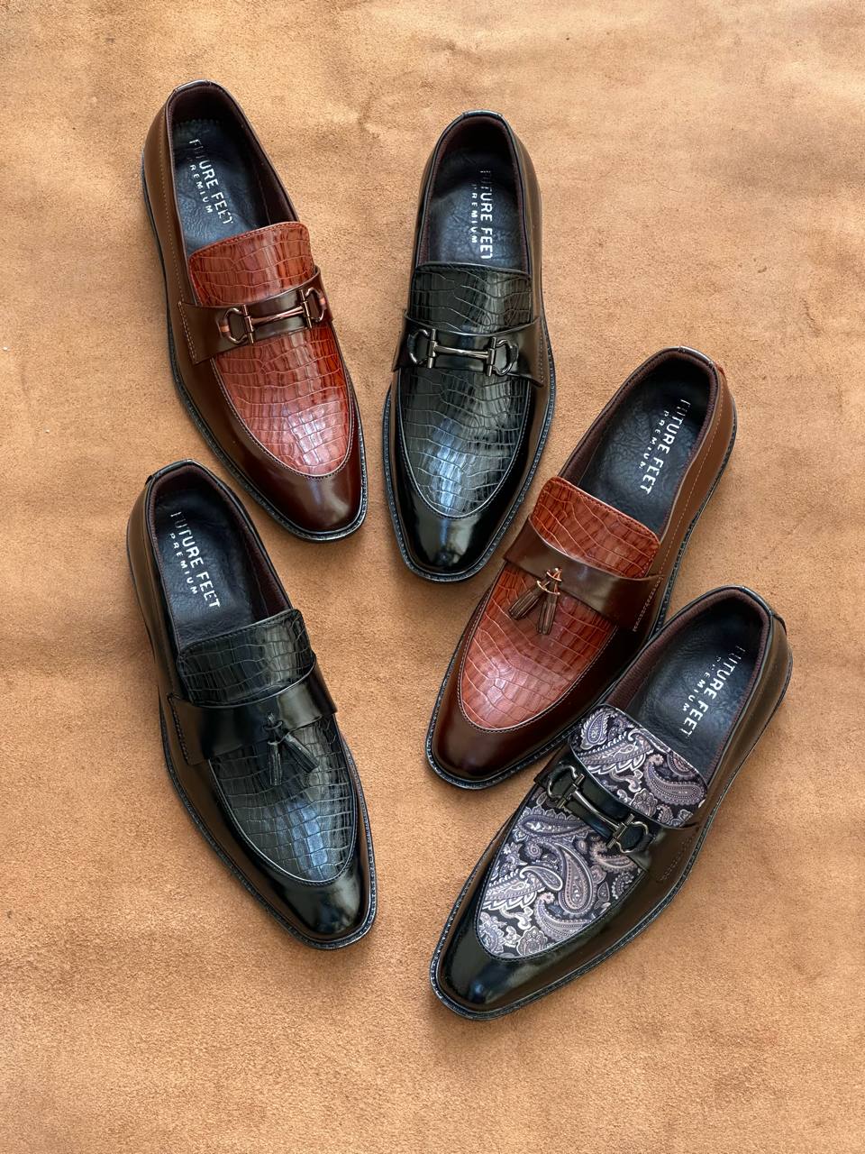 Men’s Jet Black Cow Leather Croc Tassel Loafer