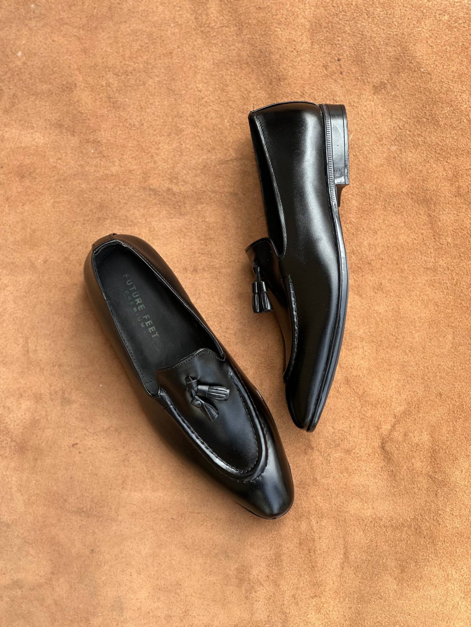 Jet Black Full Grain Cow Leather Tassel Loafer