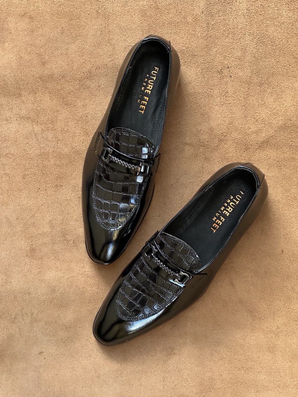 Introducing our Men’s Gloss Black Cow Leather Croc Loafer Strap Loafer a versatile choice for formal, casual, and smart casual events. Expertly crafted with 100% genuine cow leather, these loafers offer a perfect blend of style, comfort, and durability.