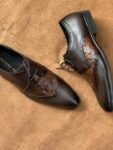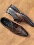 Ostrich Embossed Coffee Brown Full Grain Cow Leather Oxford Brogue Shoe