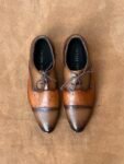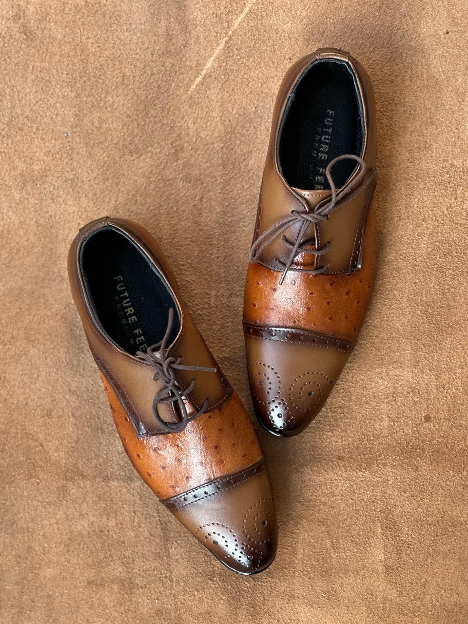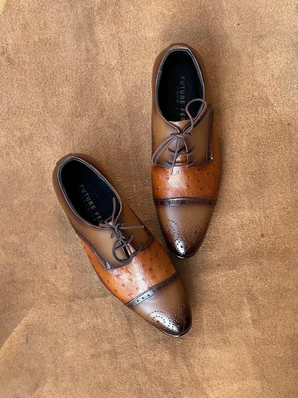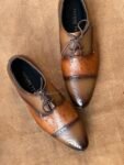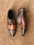 Ostrich Embossed Tan Full Grain Cow Leather Cap-Toe Oxford Shoe