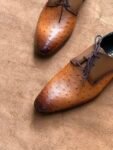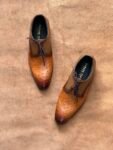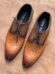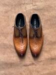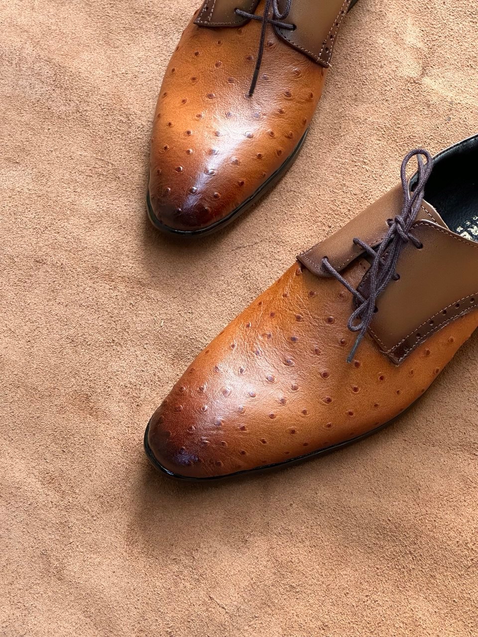 Ostrich Embossed Two-Toned Tan Full Grain Cow Leather Oxford Derby Shoe