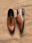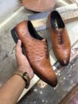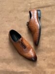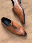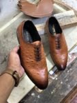 Ostrich Embossed Two-Toned Tan Full Grain Cow Leather Whole-Cut Shoe