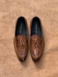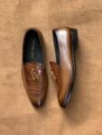 Two-Toned Tan Full Grain Cow Leather Croc Tassel Loafer