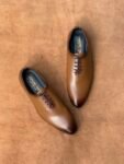 Two-Toned Tan Full Grain Cow Leather Whole-Cut Oxford Shoe